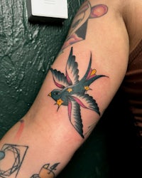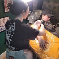 I’m Ranni — a junior artist at La Belladonna Tattoo Parlor. I’ve been tattooing for about two years now, and I’m especially drawn to bold American traditional and dainty illustrative designs. I’m all about creating art that’s playful, personal, and a little bit silly.
